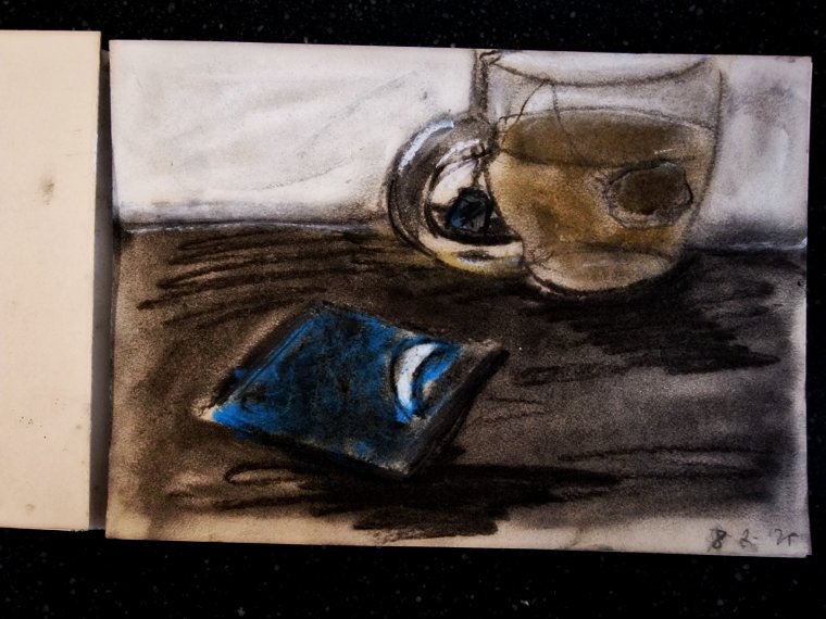 Houtskool en soft pastelkrijt op A5, soms potlood.